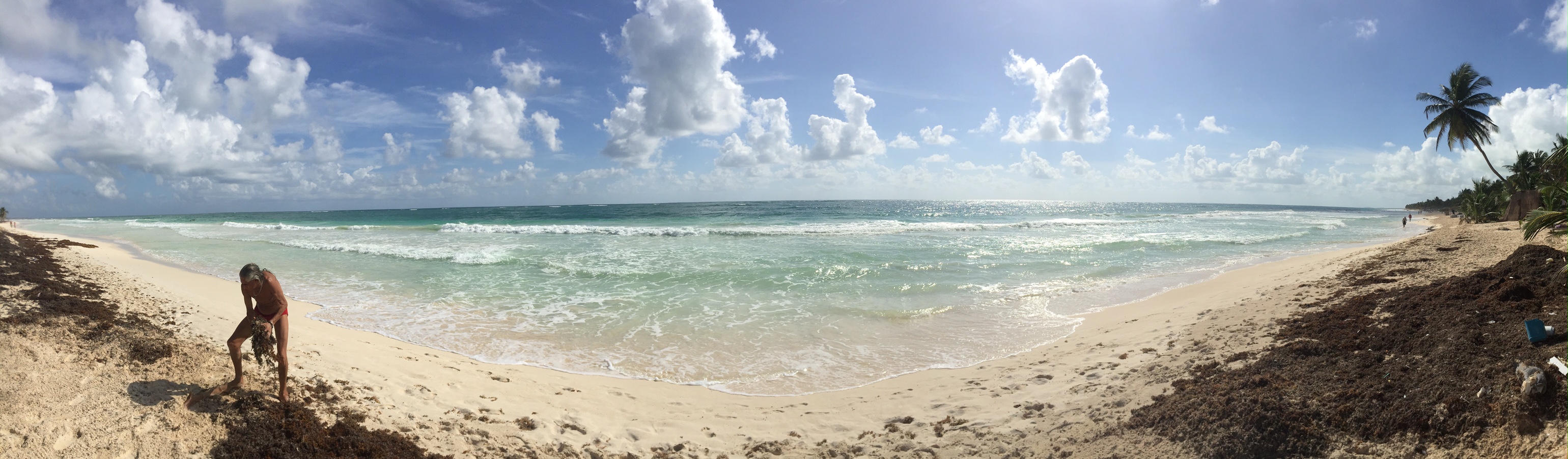 I am adventurous by proxy. It is not my natural state of being. I often over-resist our adventures & then discover I’m having the time of my life. We are on the Yucatan Peninsula in Tulum. It is a gorgeous piece of land sandwiched between high fashion resorts gobbling up the natural curve & beach-front Caribbean. It’s my first time into the depths of Mexico. One New Year’s many moons ago, I spent the Eve with a friend in Rosarito & Encinitas. This part of the peninsula reminds me more of Thailand than the former cities. Sue Ann, my adventurous partner, brought me here to share one of her favorite spots on the face of the earth. Once again, chasing history proves nothing remains the same, as trendy tourism morphs this once truly remote paradise.