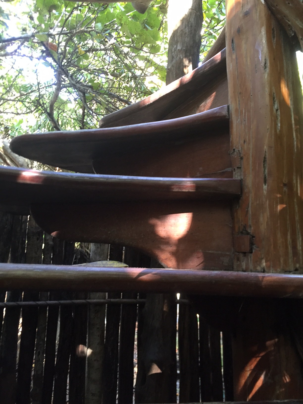 When we finally arrived at Tulum’s Shekinah BnB, we were greeted by a gentle man named Juan, our host originally from Argentina. He walked us up a swiss family Robinson type stairway to our treehouse lodgings. However impressive, I wasn’t convinced I could pretend to be a hippy under the circumstances. Perhaps another time, but tonight all I could think about was my discomfort & my mom.